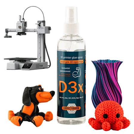 Поэтому клей для 3D печати D3х не заменим как вовремя печати, так и вовремя снятия детали.