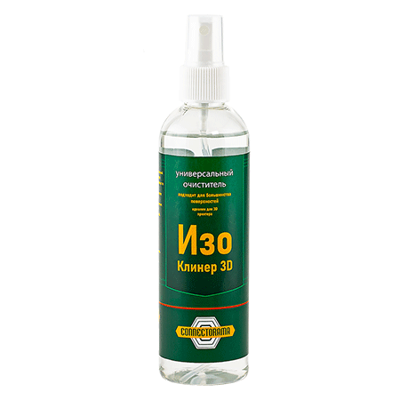 Если удаление водорастворимых клеёв не представляет проблемы, они смываются мыльной водой, то с более сильными клеями - спирторастворимыми так уже не выйдет. Для них используется специальный растворитель - Изо клинер 3D. Благодаря своему составу он прекрасно растворяет спирторастворимые клея для 3D принтера. Растворённый таким образом клей легко вытирается салфеткой.